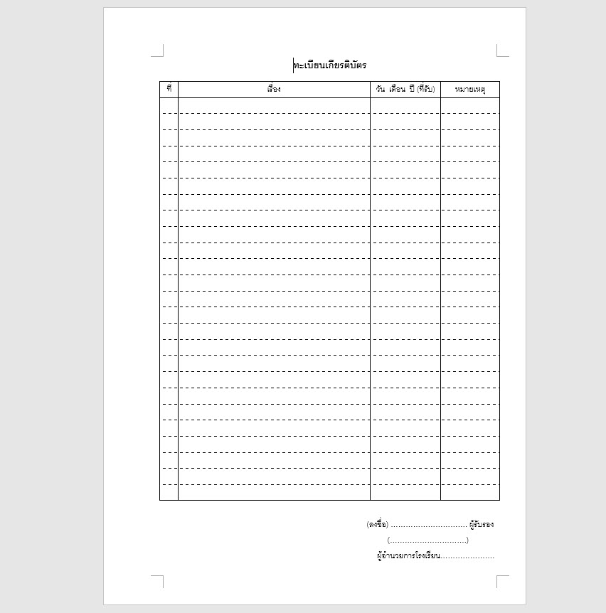 ทะเบียนเกียรติบัตรโรงเรียน ไฟล์ word doc