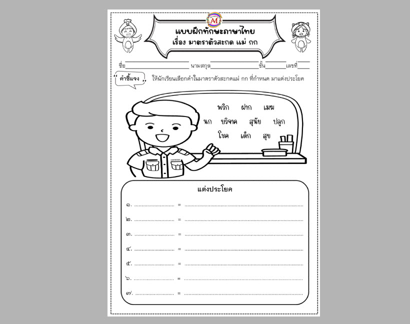 ใบงานภาษาไทย ตัวสะกด แม่กก สื่ออจากเพจ สื่อการสอน Kru AM.
